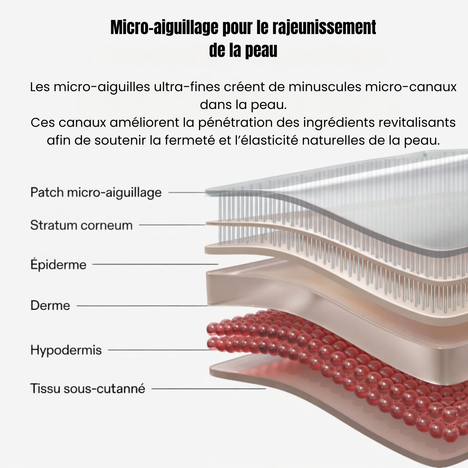 Les micro-aiguilles dissolvantes sont fabriquées à partir de matériaux biocompatibles qui acheminent ces ingrédients en toute sécurité profondément dans votre peau, là où ils sont le plus efficaces.
